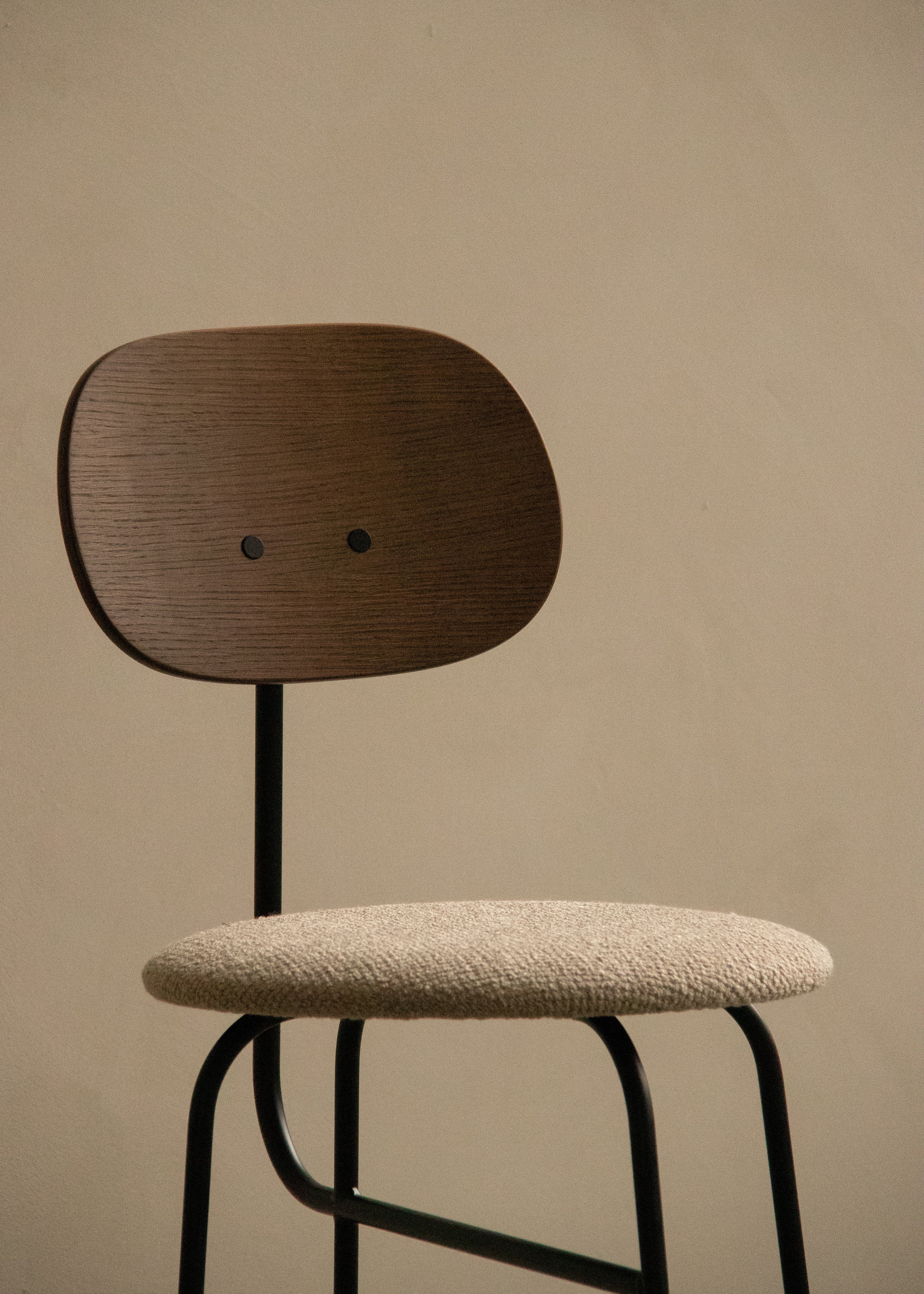 An homage to functionalism, the Afteroom Plus Bar & Counter Chair Plus is a deconstructed design, stripped of unnecessary components to present a clean, minimalist aesthetic with high functional value. Its wide wood veneer backrest and generous upholstered seat ensure supreme sitting comfort, while the slender powder-coated metal frame is constructed for maximum stability with a foot ring that does double duty as a rest for feet. The result is a blissfully simple chair that embraces minimalism and clean lines without compromising on comfort.