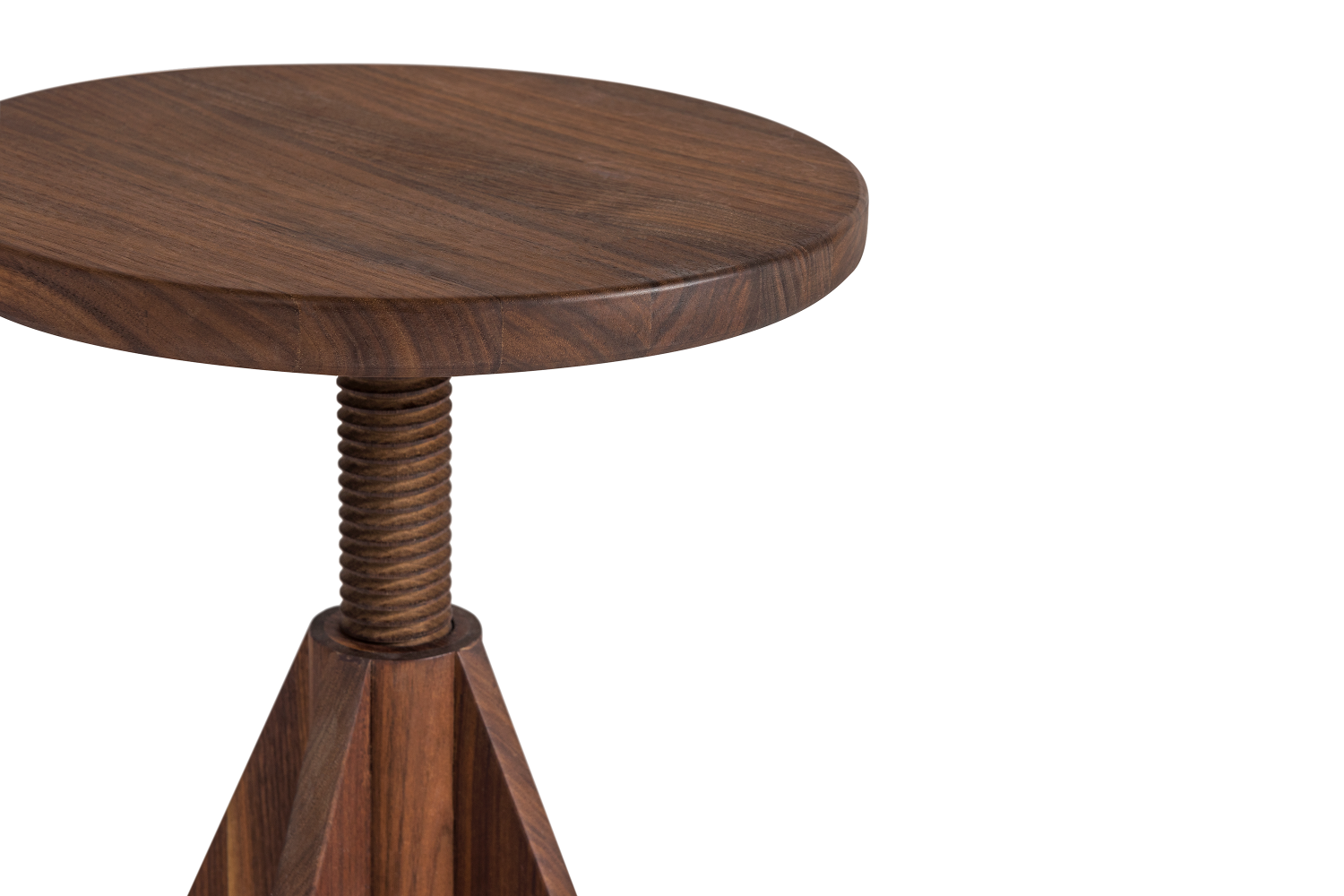 Like a good friend, the All Wood Stool is easy to be around. This functional piece of occasional furniture can be a side table, a seat, or a platform on which to display your favorite things. Adjust its height whenever you like with a simple turn of its screw mechanism. Designer Karoline Fesser nods to midcentury icons such as the Eames Time Life stool as well as functional workshop furniture like sculptors’ tables. As its name implies, this piece is made from solid ash or walnut wood, CNC cut, and lacquered. Choose from two shapes, Rocket or Bobbin.