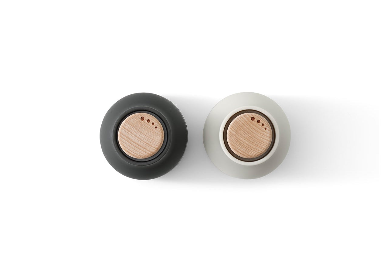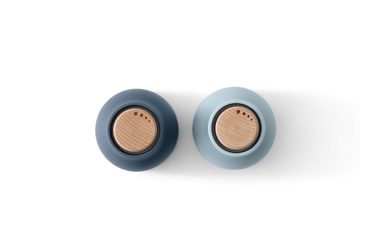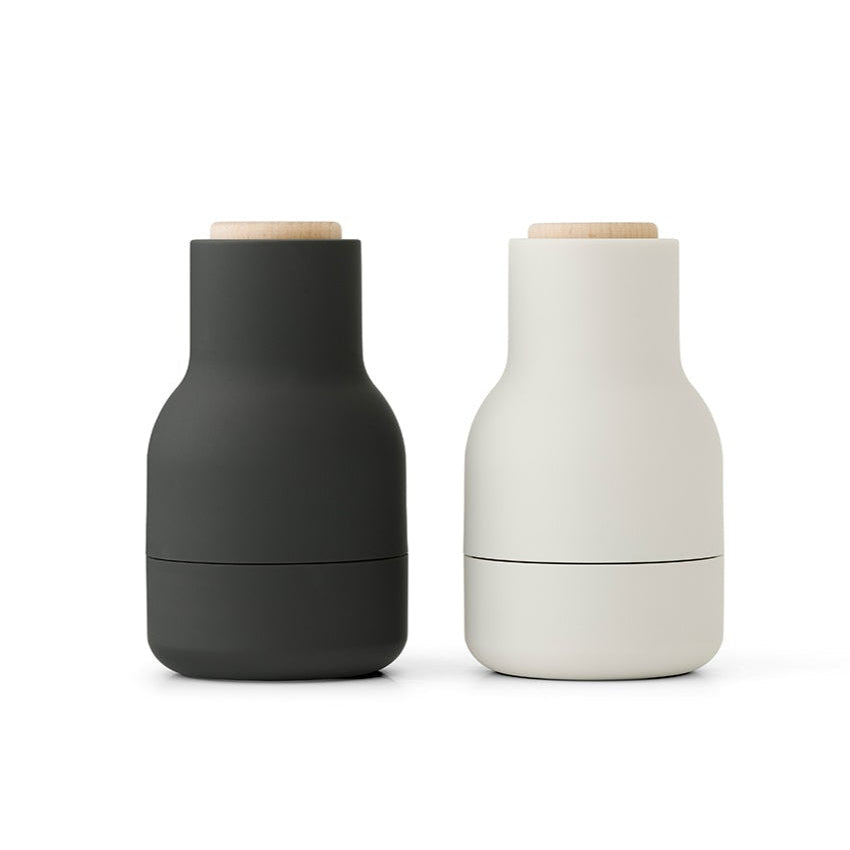 The unique, inverted design ensures that whatever you fill them with only sprinkles out when you grind, leaving no trace on the table or in the kitchen. The Grinders have a bottle-like shape, which is also important to the whole experience. Designer Kasper Rønn, From a shape like this, you’d expect the content to be something liquid like oil or dressing, you’re not at all expecting dried up spices or nuts. We used this shape to surprise and somewhat trick the users. Sometimes people need a bit of a surprise in order to change their habits”. Audo Bottle Grinders have a rounded base that fits perfectly into the hands, and have a rubber surface that’s easy to grip and to clean. They come in a range of beautiful, soft Scandinavian colors. Bon appétit. Each set includes two bottle grinders