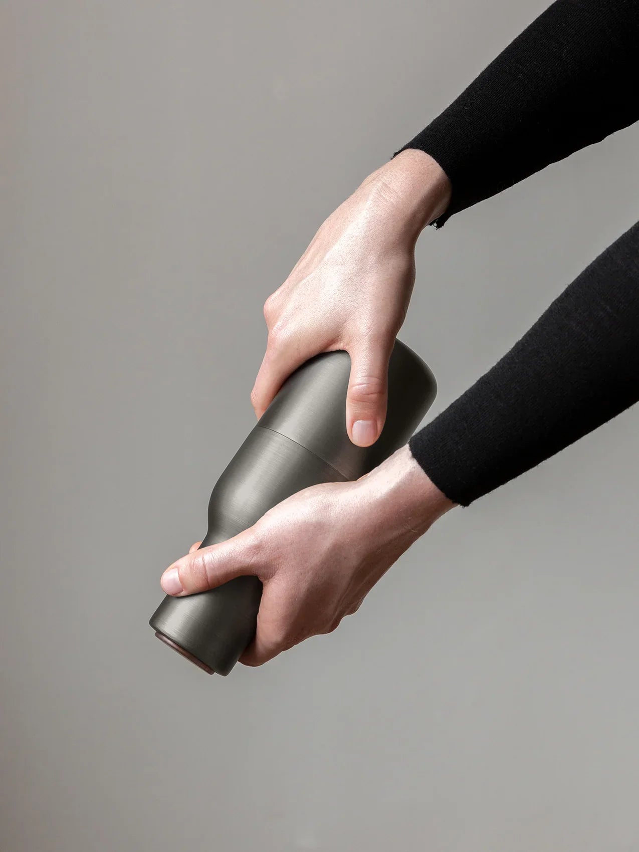 Steering away from the predictable grinder, the Norm 'Bottle Grinder' is not what you expect to see in a salt and pepper grinder. The form, shaped more like a bottle, cleverly tricks the user to encourage a more playful and experimental interaction with the product. The powerful ceramic mechanism makes the grinder easy to operate and perfect for trying out more than just salt and pepper including spices and grains, nuts, seeds or dried fruits. You simply open them, fill them with delicious ingredients and close them again. Simple as that.