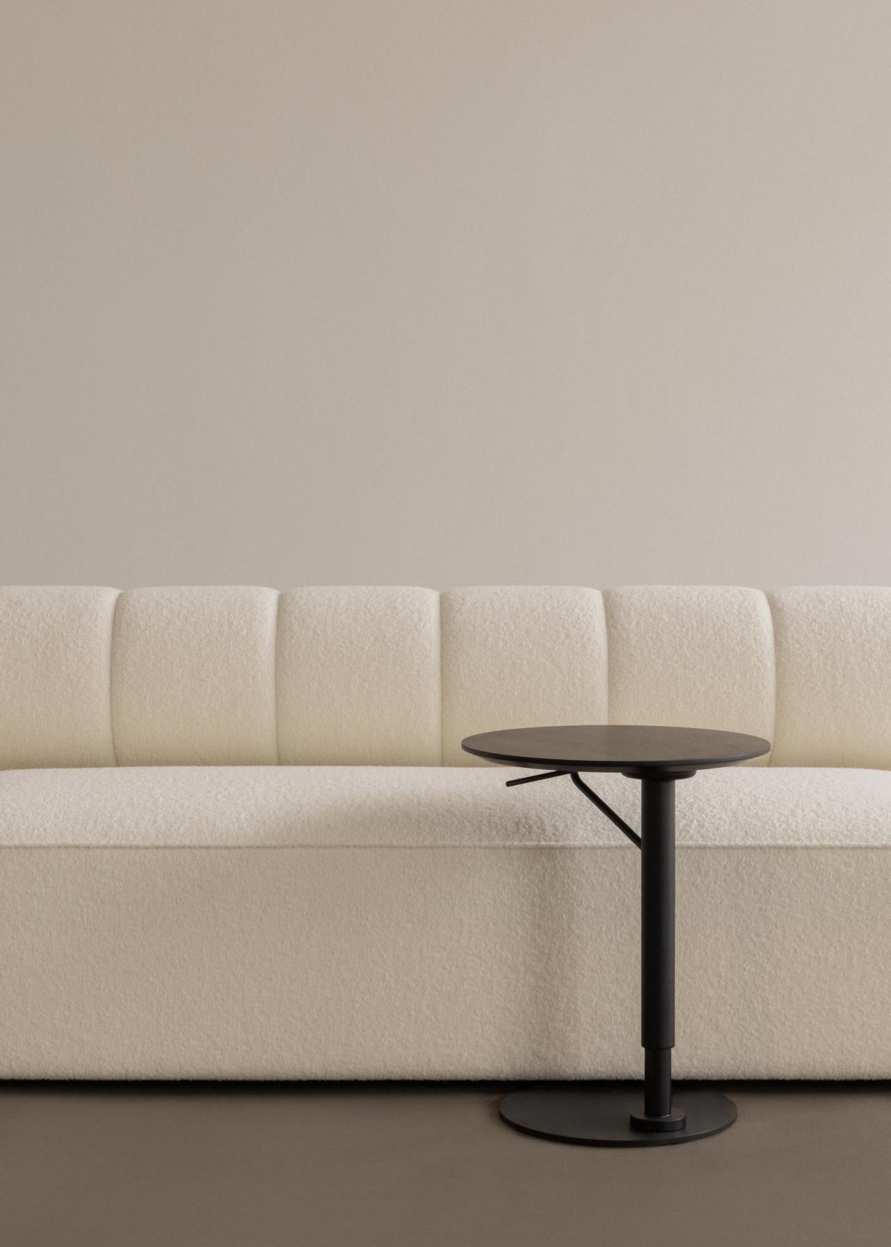 Whether used as an occasional table or a temporary workstation, the height adjustable Branch Side Table adapts to changing needs, offering a versatile and seamless solution for dynamic living spaces. Its compact and flexible design allows it to be conveniently pushed close to a sofa or chair, optimising space, while its black steel base and charcoal linoleum or dark-stained oak tabletop add a touch of sophistication in a quality that ensures it withstands the demands of daily use.