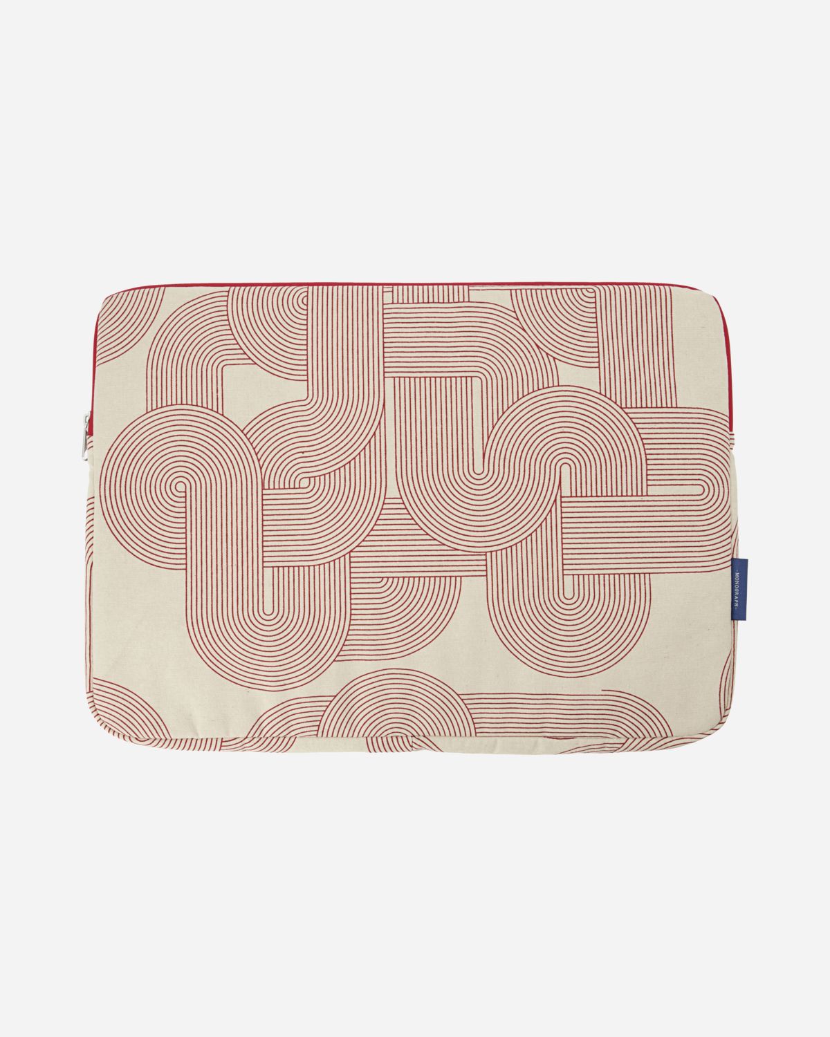 Protect your laptop with this large and informal sleeve called Bump. It is made by Monograph and has an understated graphic design that suits any creative soul. Like you. The sturdy canvas reduces the risk of scratches on your precious laptop and keeps it dust-free. Let your personality shine through as you run from meeting to meeting by carrying the sleeve under your arm. With your laptop in it. Not all everyday items have to be boring. This sleeve certainly isn't. If you really like the red pattern, get the Bump pencil case in the same design. Fits a 17 inch laptop.