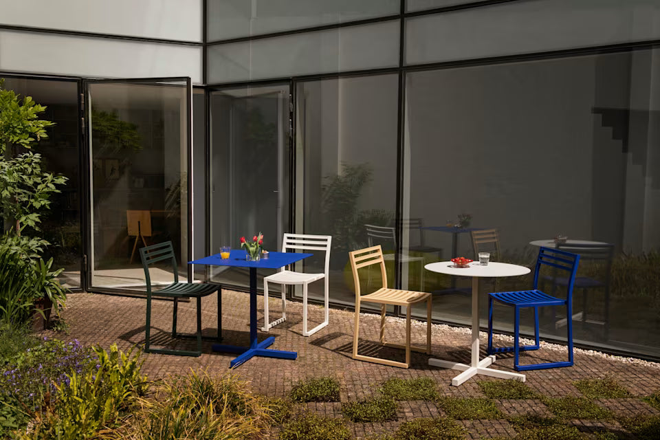 The Chop Chair by Philippe Malouin is an evergreen design conceived for use in a range of public and private outdoor spaces. Beautifully proportioned, with subtle curvatures, it is intentionally simple, in both construction and style. Chop reimagines a classic slatted-chair archetype to create a silhouette that is immediately recognizable, yet pleasingly unknown. The idea for the design was influenced by Malouin’s work in the art world, where he often utilizes hand-led industrial techniques to develop striking forms that accentuate the object's materiality. The Chop collection is cut, bent and welded from durable stainless steel, and is available in a raw, sandblasted or powder-coated colored finish. A design for all seasons, Chop is correctly weighted to resist wind, while still being light enough to move around and stack with ease.