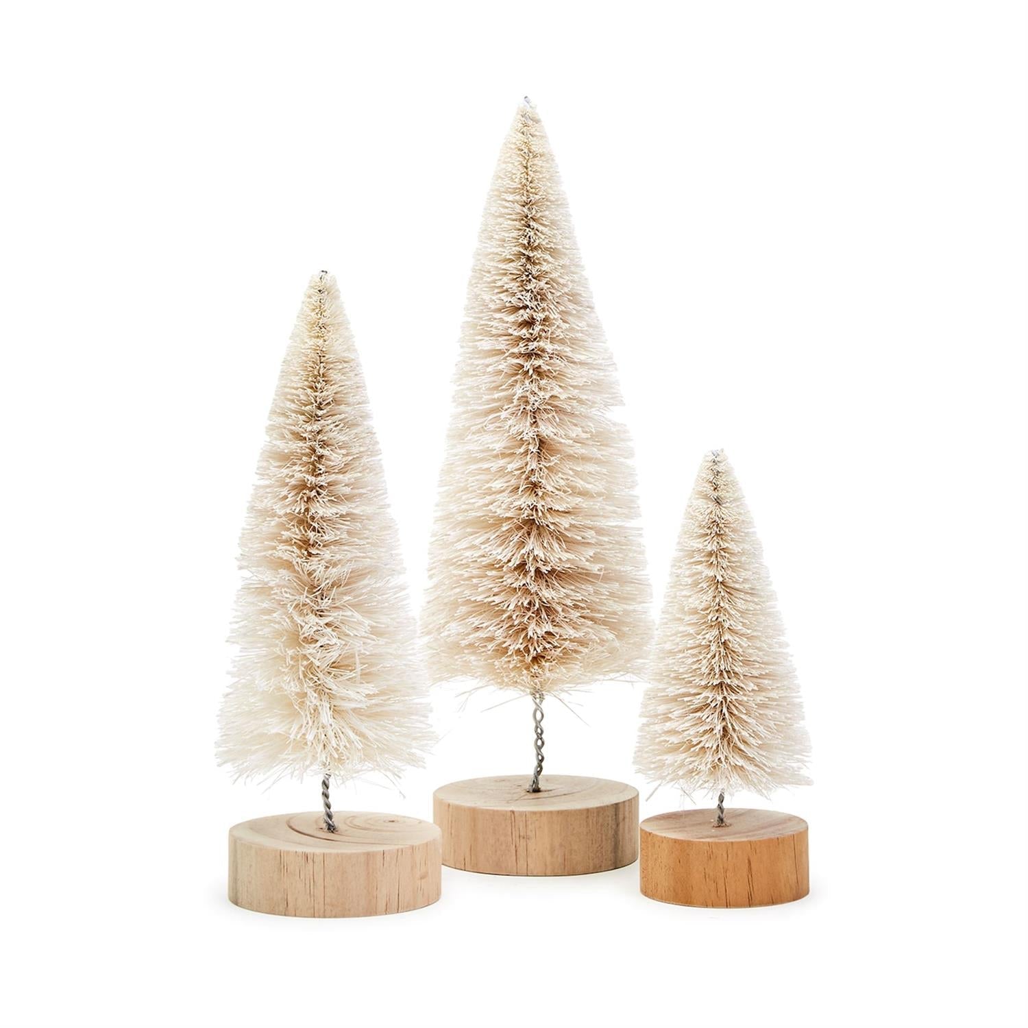 These festive trees are an easy and classic way to decorate for the holiday season. These bottle brush trees come in a set of 3, each featuring a white tree and wood base. Whether used as a stand alone or in a bundle, these trees instantly upgrade any table top or shelf.