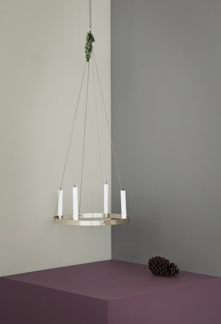 This multifunctional and minimalistic candle holder is made from all natural materials and will look beautiful whether you put it directly on a table or hang it from the ceiling in the removable leather strings. An instant classic you will use every December and throughout the year. Made in solid brass, polish when needed