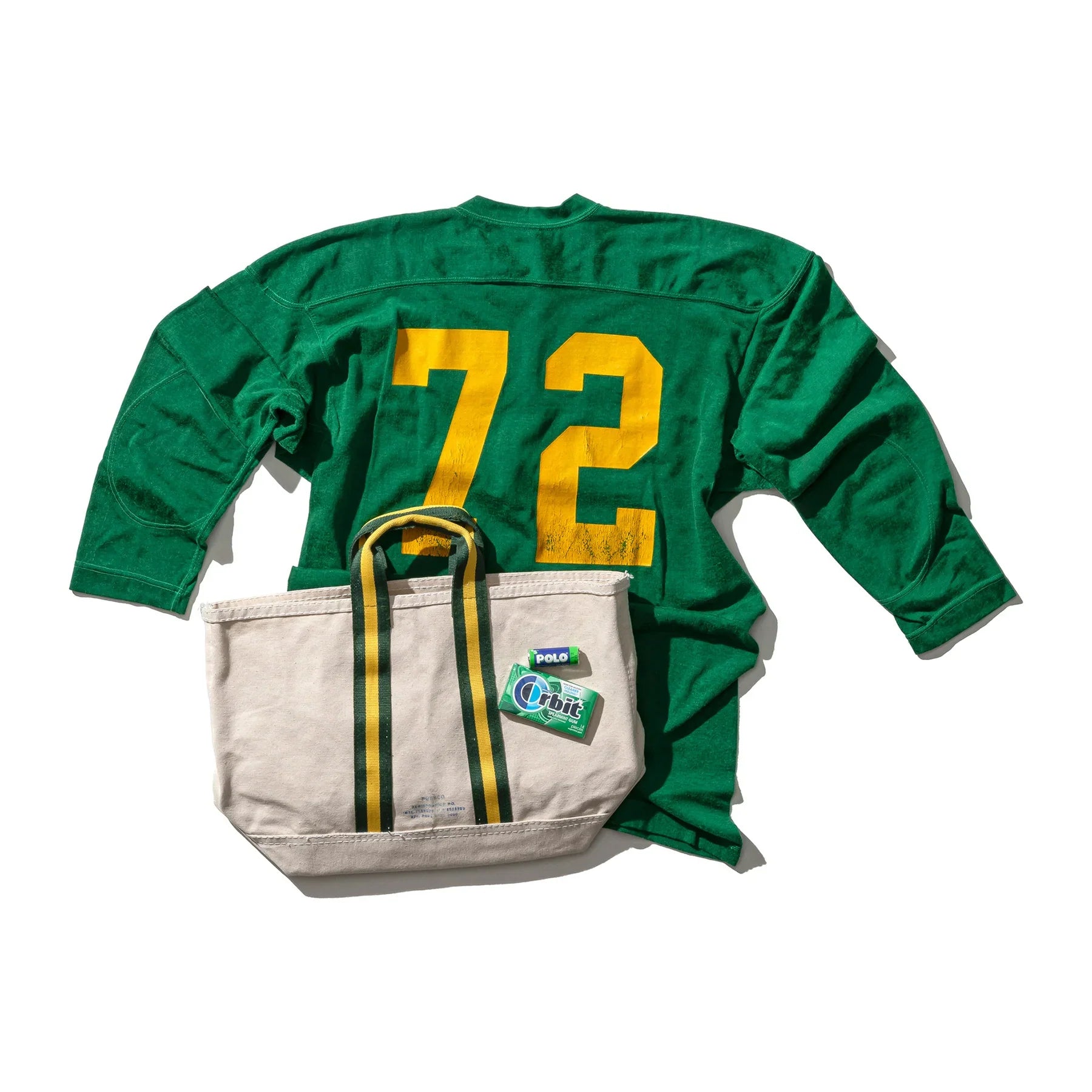 This college tote bag brings a touch of nostalgia with its retro-inspired design and unique handle sourced from a school uniform belt. Made with sturdy canvas, it maintains its structure and holds a strong and rugged look.