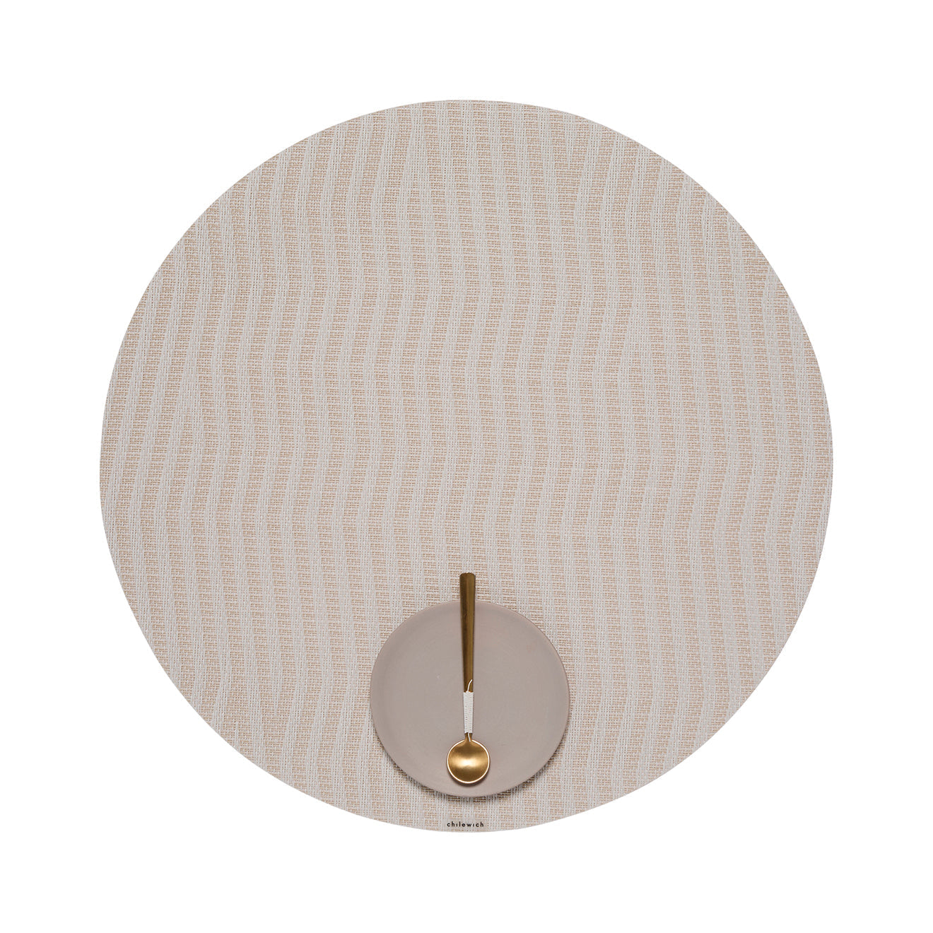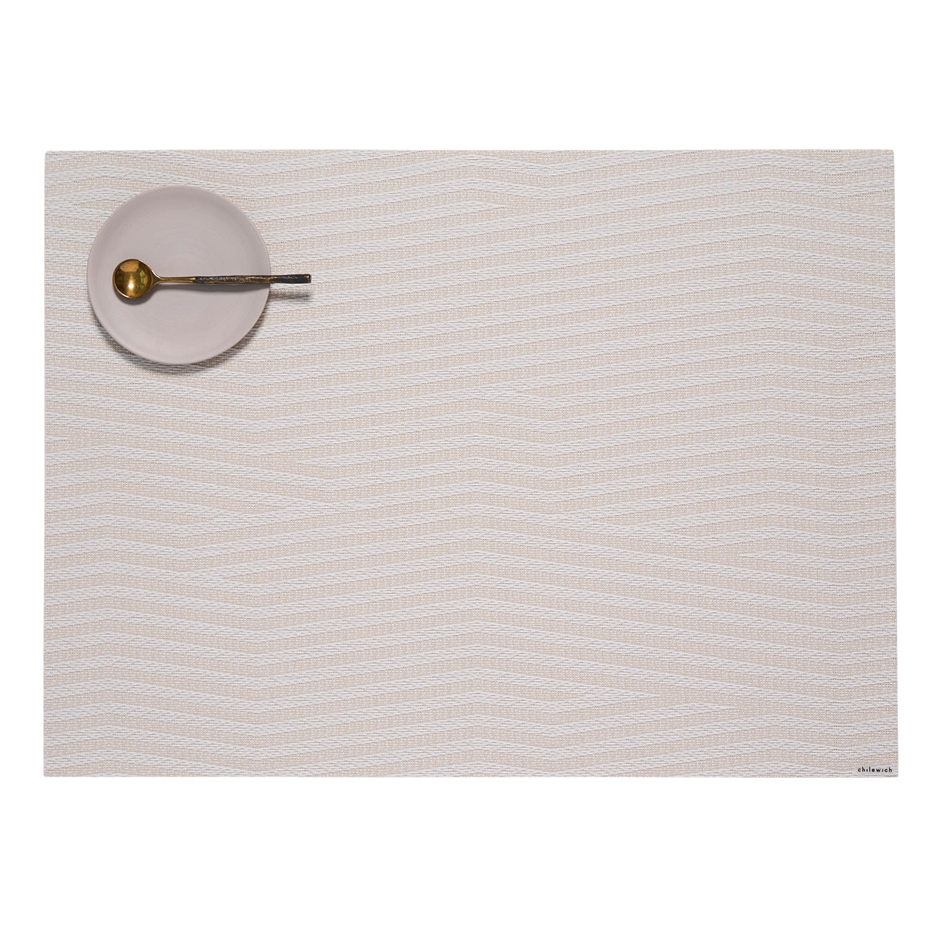 Tonal hues and softened angles bring a calming character to Dune, named for its resemblance to lines etched in sand. The Chilewich design team combined multiple weave structures to achieve an especially tactile surface, with meandering stripes of varying heights. The large scale of Dune's repeat makes each placemat unique. Suitable for indoor and outdoor use. Made in the USA with TerraStrand® and Microban®. Free of phthalates.
