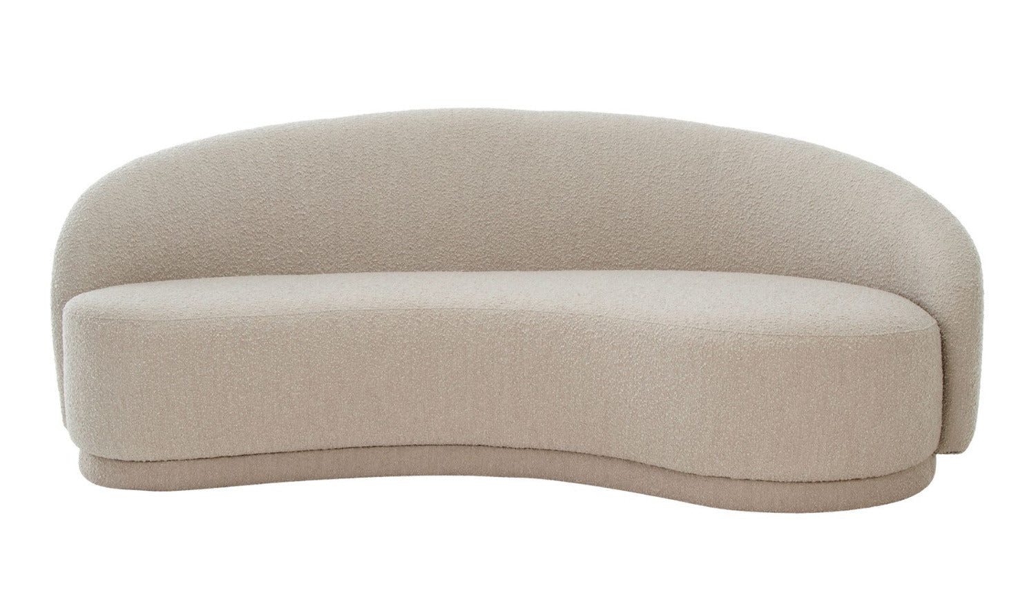 A beautiful introduction to boucle, the Excelsior sofa is an exquisite embodiment of serenity and sophistication. Designed to comfortably accommodate four, this generously proportioned sofa features a gracefully curved silhouette that epitomizes effortless simplicity. This piece is pure comfort and style, evoking an experience of tranquility and relaxation, redefining the interior landscape with refinement and unparalleled softness.