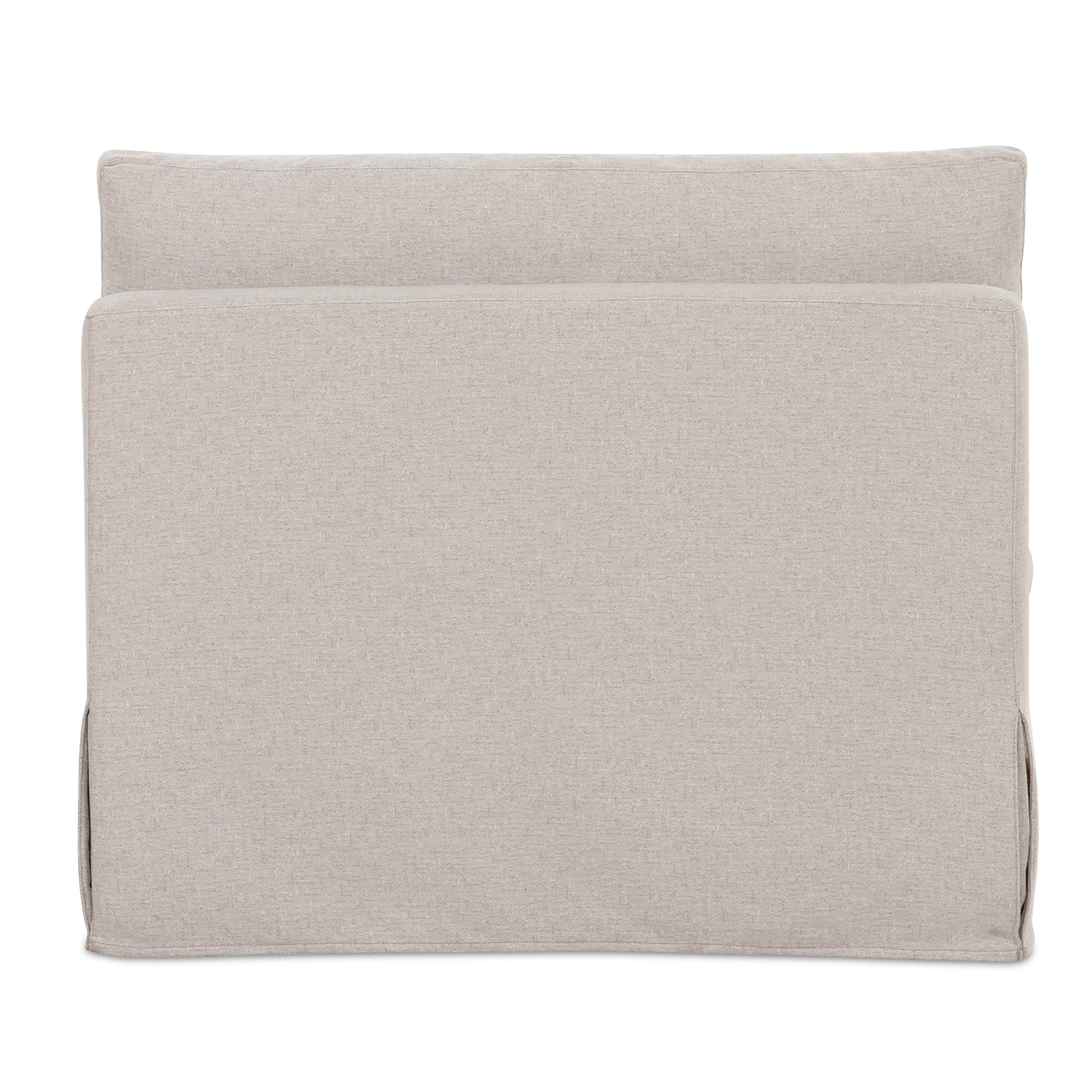 The Fable slipcover dining slipper chair's snug-fitting, washable slipcover with inverted pleats offers a tidy appearance and effortless upkeep. A slight tilt encourages a relaxed seating posture with a pillow back and seat cushions for comfort. Designed to be modular, it includes alligator clips to connect with other pieces in the collection, adapting seamlessly to various dining table sizes.