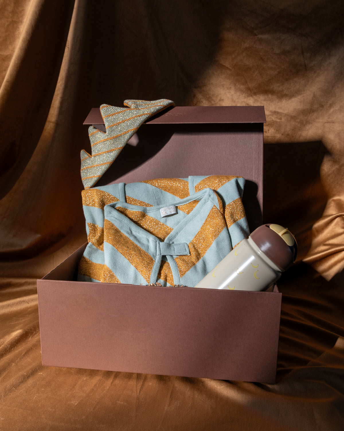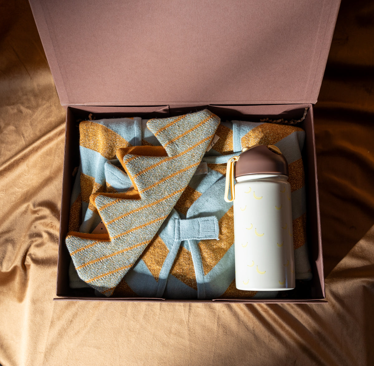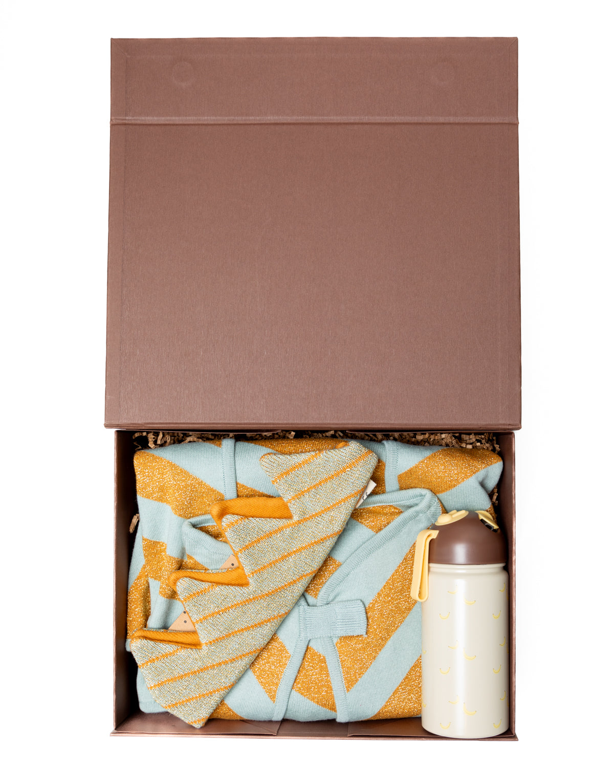 The Golden Child gift box is fit for a young king or queen. This set includes a stylish cape, a matching crown, and a tumbler to keep them refreshed during their next big adventure. Perfect for dress-up, playtime, and making every day feel a little more magical.