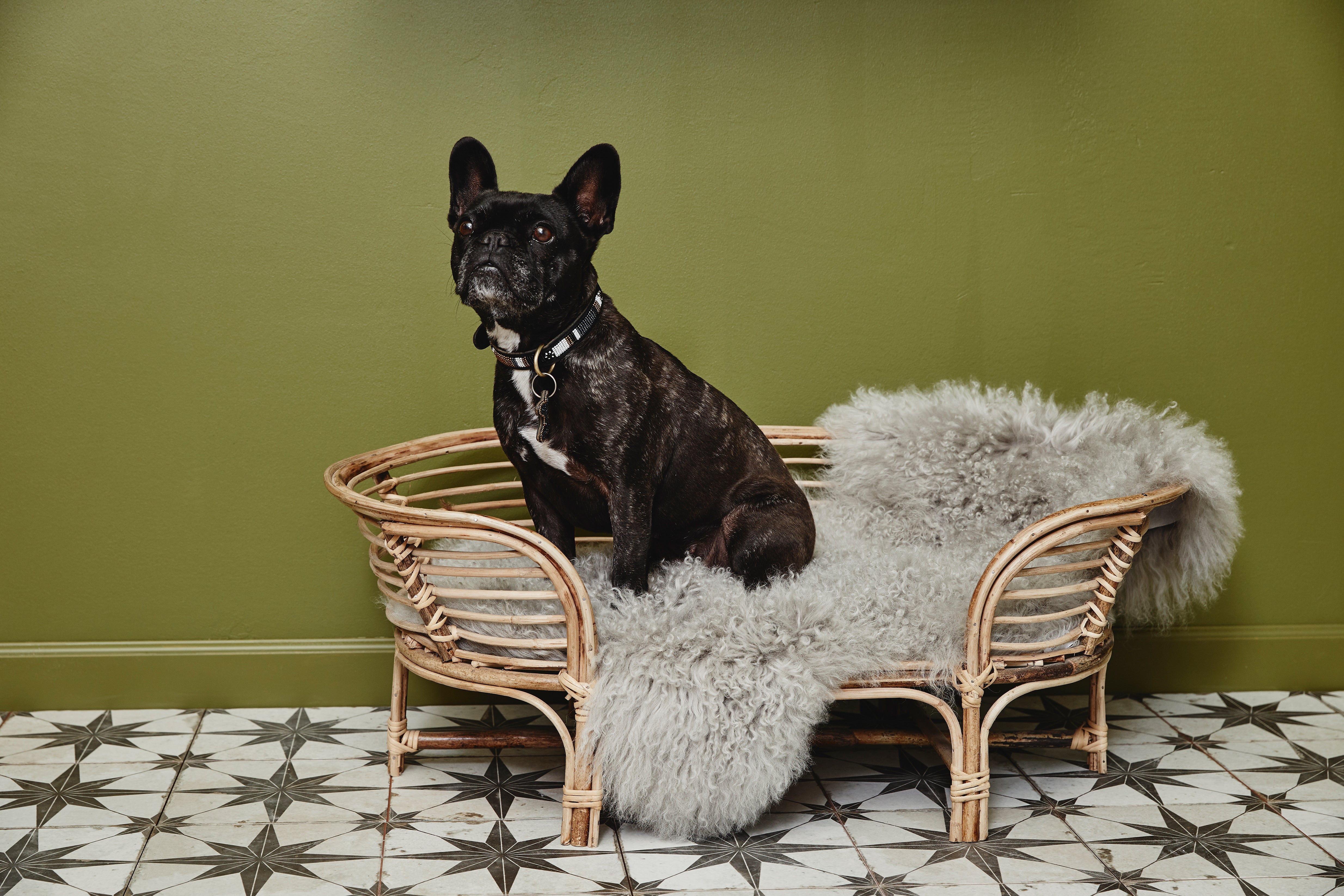A cozy dog bed in natural rattan material - use it with your favorite blanket