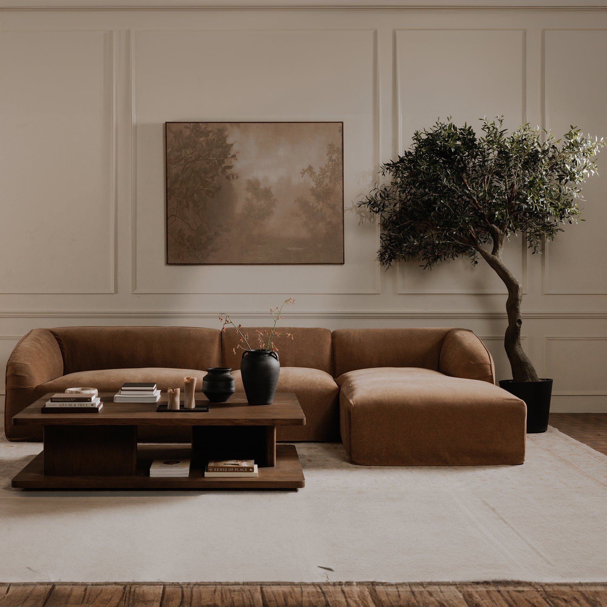 The Isla’s versatile modular form, washable slipcover, and relaxed comfort are designed for everyday living. Ultra-soft, removable and machine washable slipcovers ensure effortless maintenance while preserving a casual elegance. Isla’s relaxed silhouette adapts seamlessly to any space, exuding warmth in a rich hue, and inviting lounged relaxation with its soft, curves and plush faux feather fill