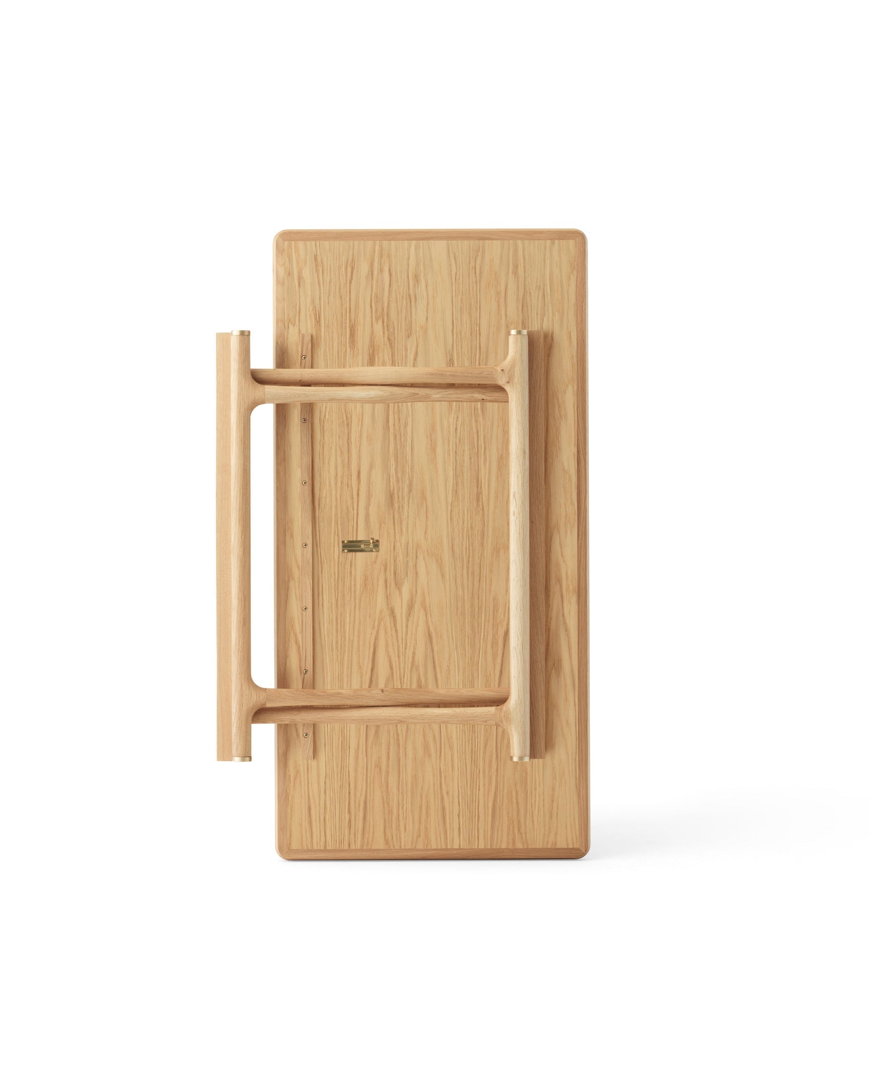 An archival design from 1941, Mogens Lassen’s foldable Jäger Lounge Table is reissued to a modern audience. Its name comes from the merchant for which it was created, and its design is inspired by the folding stools and beds found in Tutankhamen's Egyptian tomb. Shaped from wood – oiled oak or oiled walnut – brass fittings detail the iconic piece of Danish design. The table also features a brass plaque engraved with a unique serial number.