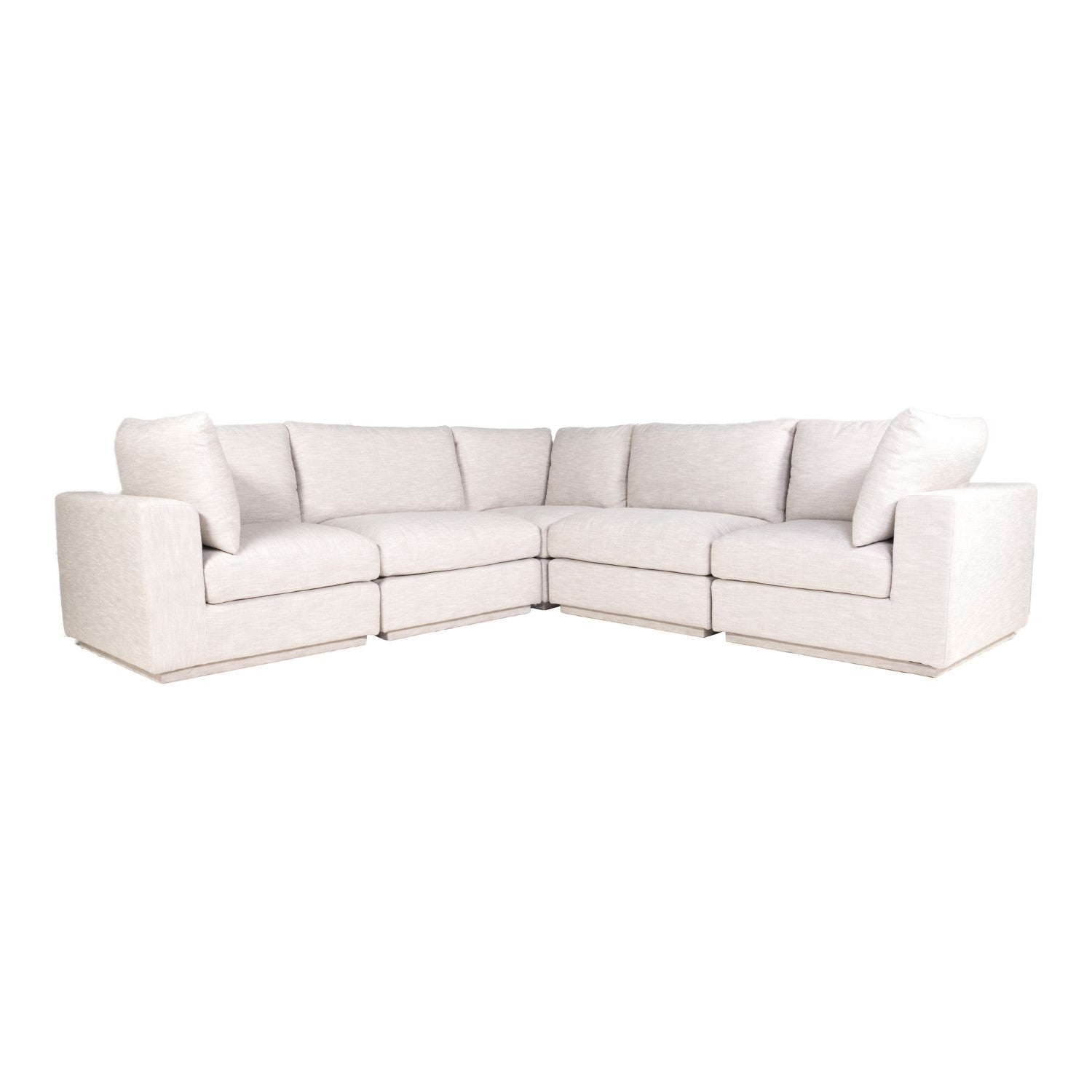 An everyday modular marvel. The Justin classic L modular sectional is all about options, so sizing and space-fitting are up to you until you find the perfect arrangement for this contemporary modern design! Outfitted in a linen-blend upholstery that's gentle to the touch with bouncy, high-density foam seating to cozy you and the whole family in comfort. A versatile design for any sized space, Justin is available in a corner chair, slipper chair, and stylish ottoman.