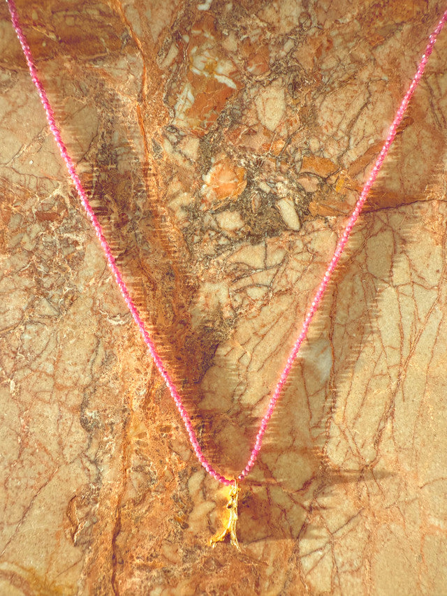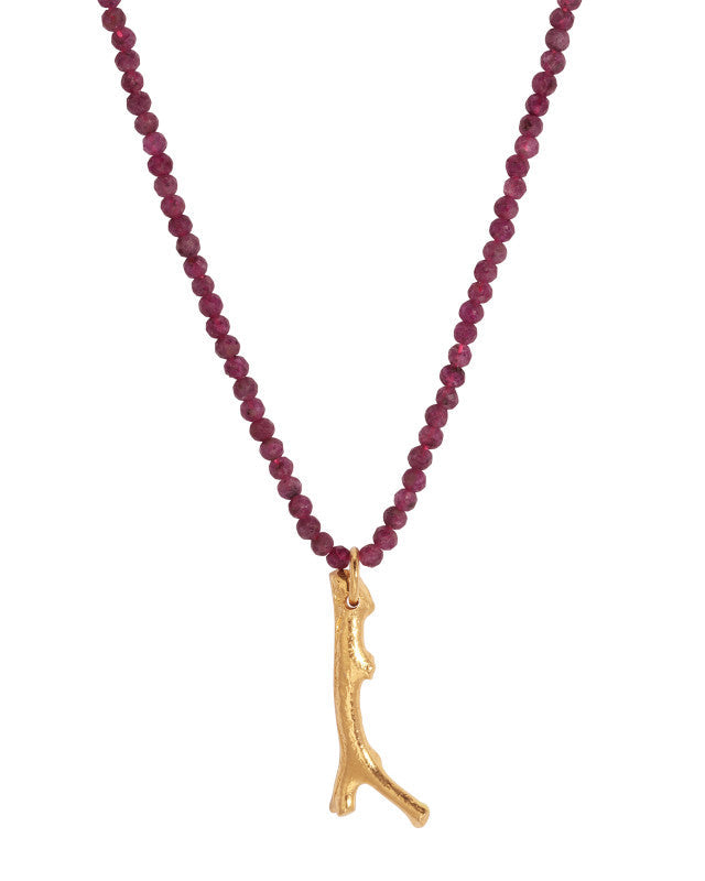 Mini faceted garnet stone beads and 18k gold vermeil or sterling silver charm necklace featuring re-cast coral stone.