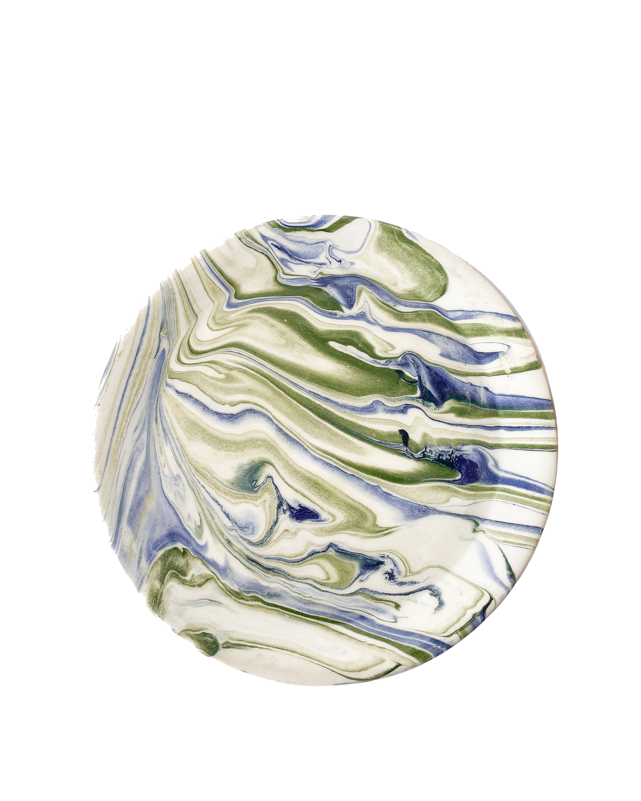 Fun and bold, the Marbled collection mixes inspiration from Moroccan pottery with the global tradition of marbling.  We’ve created this range in a 3 color palettes that echo the natural world while making graphic statement pieces for everyday use.Subtle asymmetry and color variations highlight each pieces handmade origins.