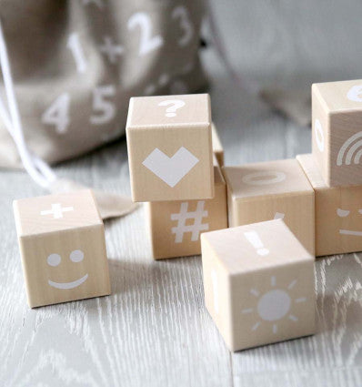 Whether you call it math or maths, mathematics is fun! What better way to help kids discover their hidden talents with numbers than with the help of simple wooden blocks printed with numbers, basic math symbols and a few emojis to help them express their joy (and even frustration!). Just like our Alphabet Blocks, Math Blocks come 10 to a set in their own pure linen sack. The Math Blocks can also be used as a simple calendar system for your shelf or combine them with our Alphabet Blocks to make plenty of new messages. #wow:)