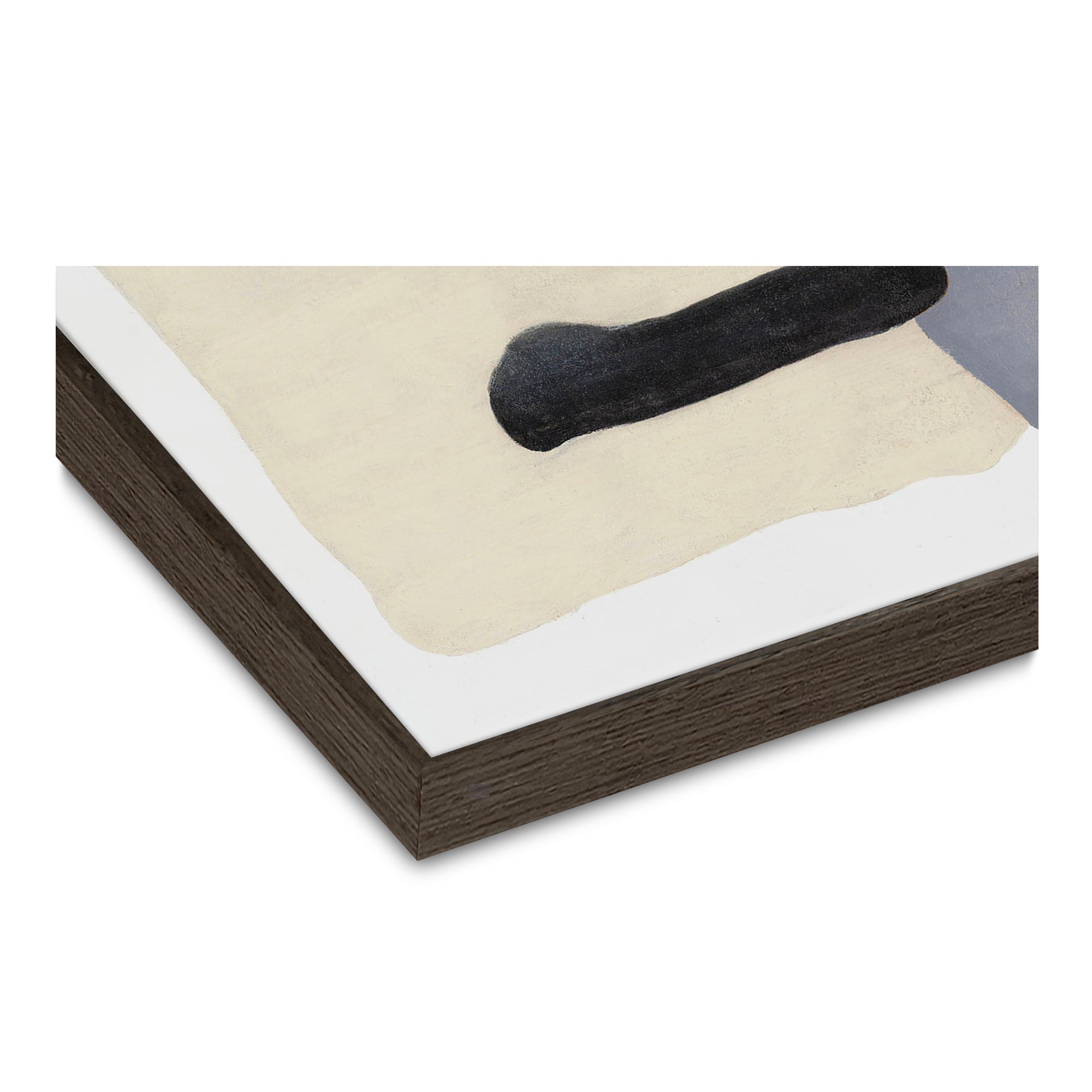 The Naya framed print's contemporary abstract form, a graceful dance of warm tones accented with beige and gently layered with cool grey blues, creates a mesmerizing visual symphony. Encased under tempered glass, this print harmonizes luxury with minimalist design—ideal for integrating into gallery walls where it adds depth and texture without overwhelming.
