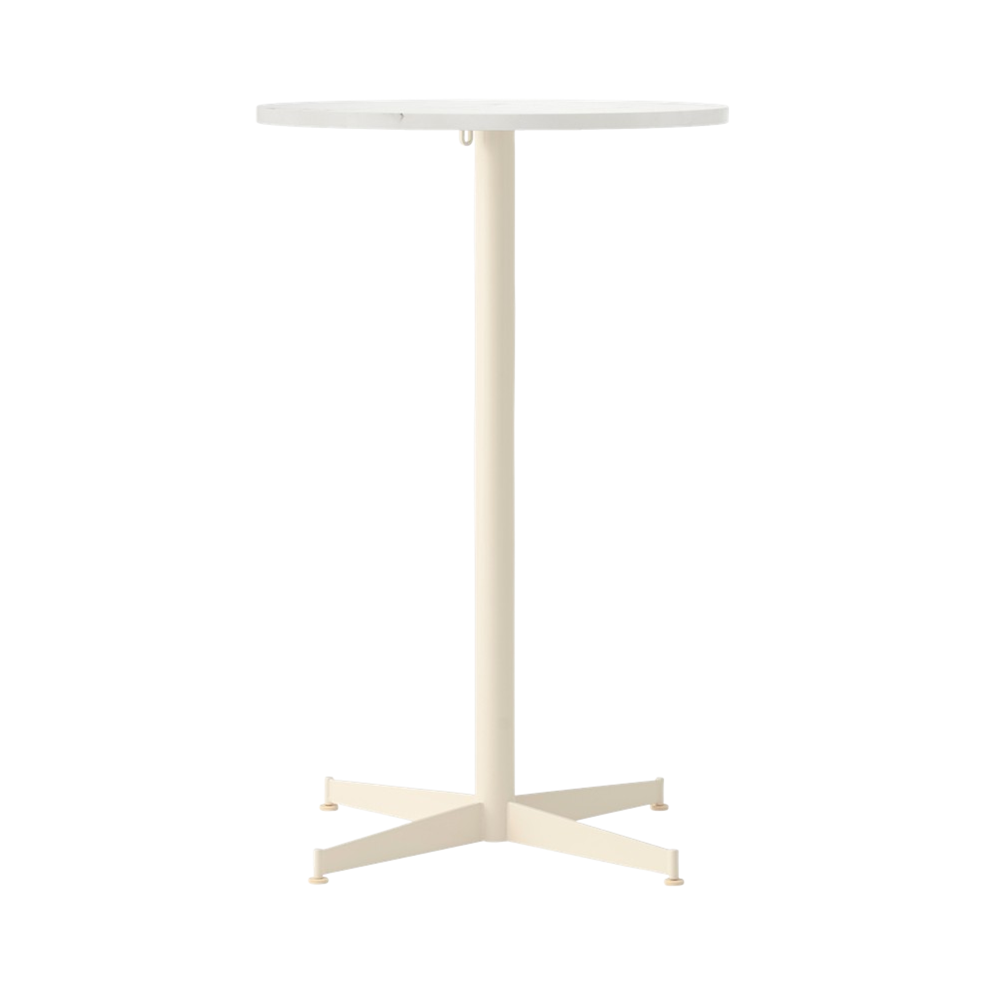 At the intersection of function and flow, the Nook Counter Table bridges the space between sitting and standing. Ideal for transitional zones — kitchens, cafés, studio workspaces — it brings refined simplicity to areas where adaptability is key. The monochrome base, offered in three finishes, pairs with a range of tactile tabletops from the Audo collection. Its minimal footprint and sculptural form make it an understated anchor in dynamic environments. Suitable for indoor and outdoor use.