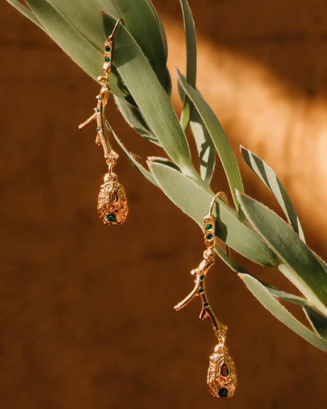 Featuring recast coral and limpets, emerald micro stones in 18k Gold Vermeil or sterling silver.