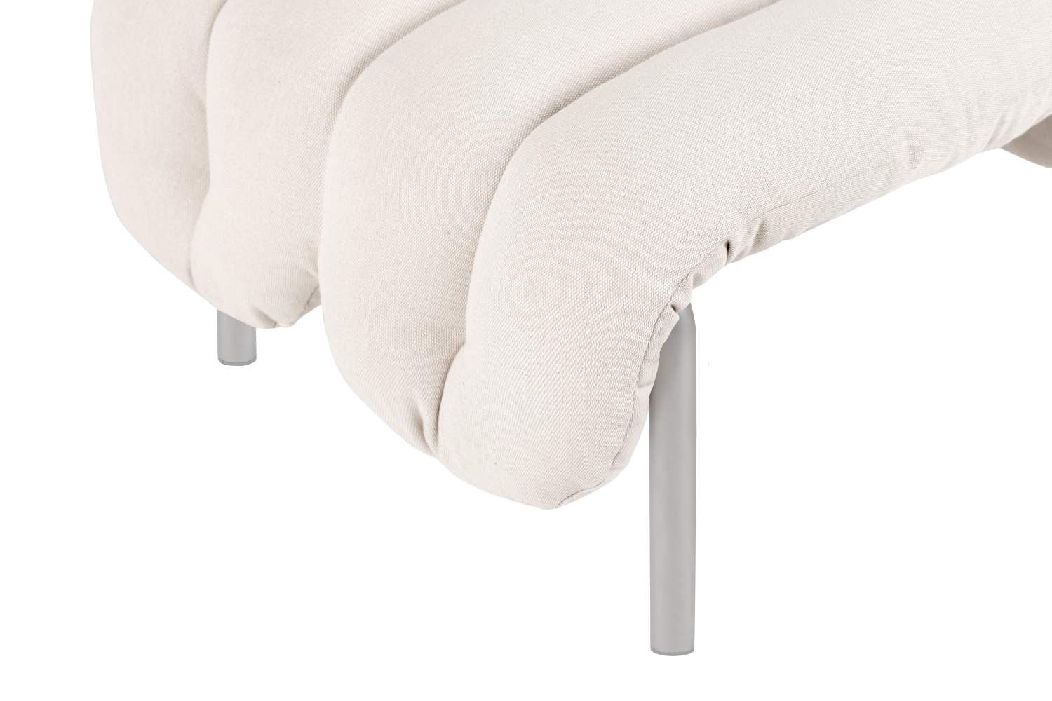 The detachable upholstery of the Puffy Lounge Chair is fat and plump, its generous shape spills freely over the sides of a tubular steel frame which, in stark contrast, is hard-lined and strong. The two key elements of this seating design by Faye Toogood are in purposeful and playful juxtaposition. The elementary frame is inspired by the rational structure of classic modernist design, whilst the extravagant quilt-like upholstery warmly embraces and envelopes, is comforting and reassuring. The Puffy Chair frame is available in powder-coated or sand-blasted steel finishes and a choice of thick canvas, chunky bouclé or luxurious leather upholstery.
