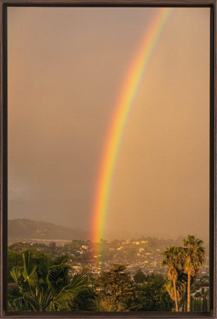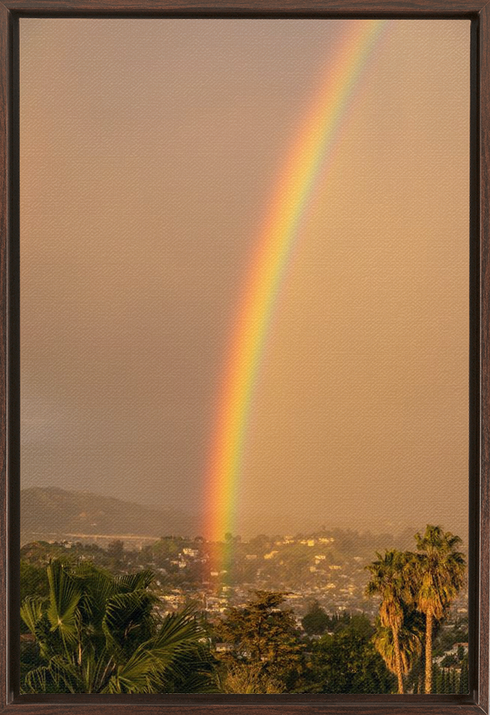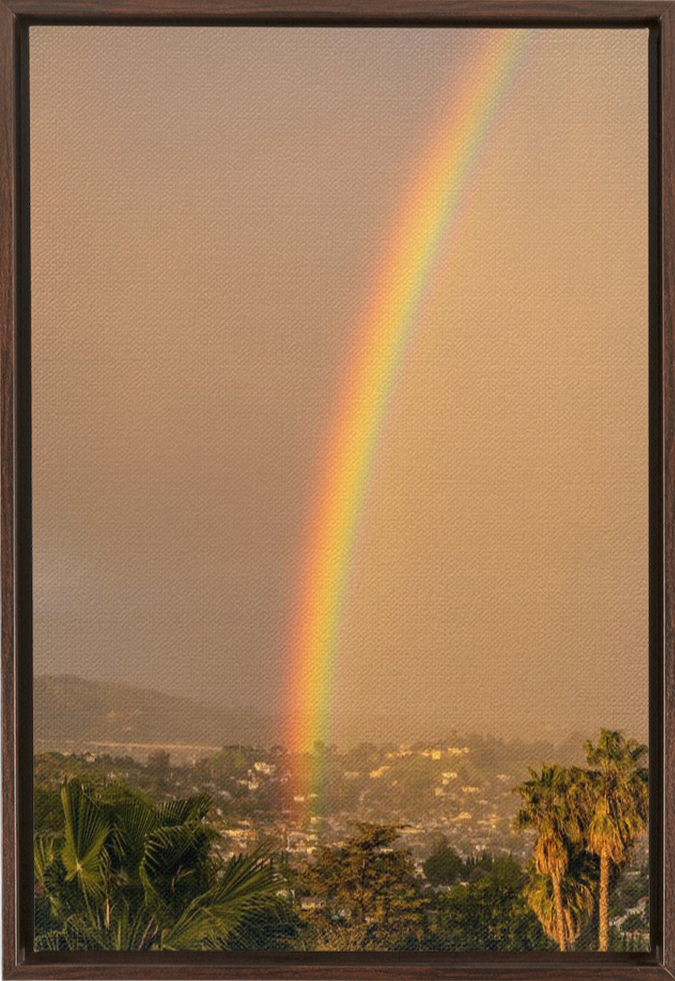 Ready to hang canvas print media is acid free with a medium texture and scratch-resistant finish. Solid wood frame, fully finished backing, with corner bumpers for level hanging and to protect your wall. Easily wipes clean with a damp cloth.