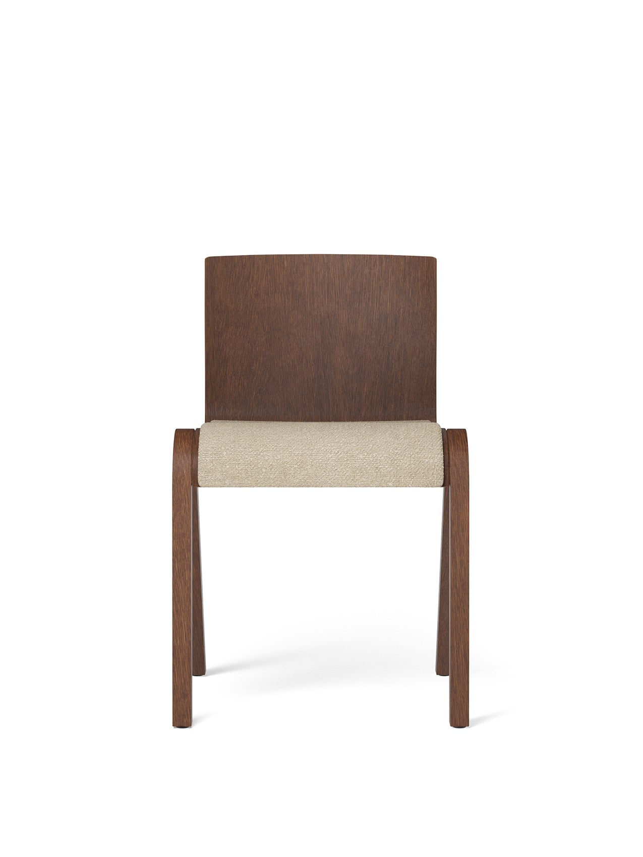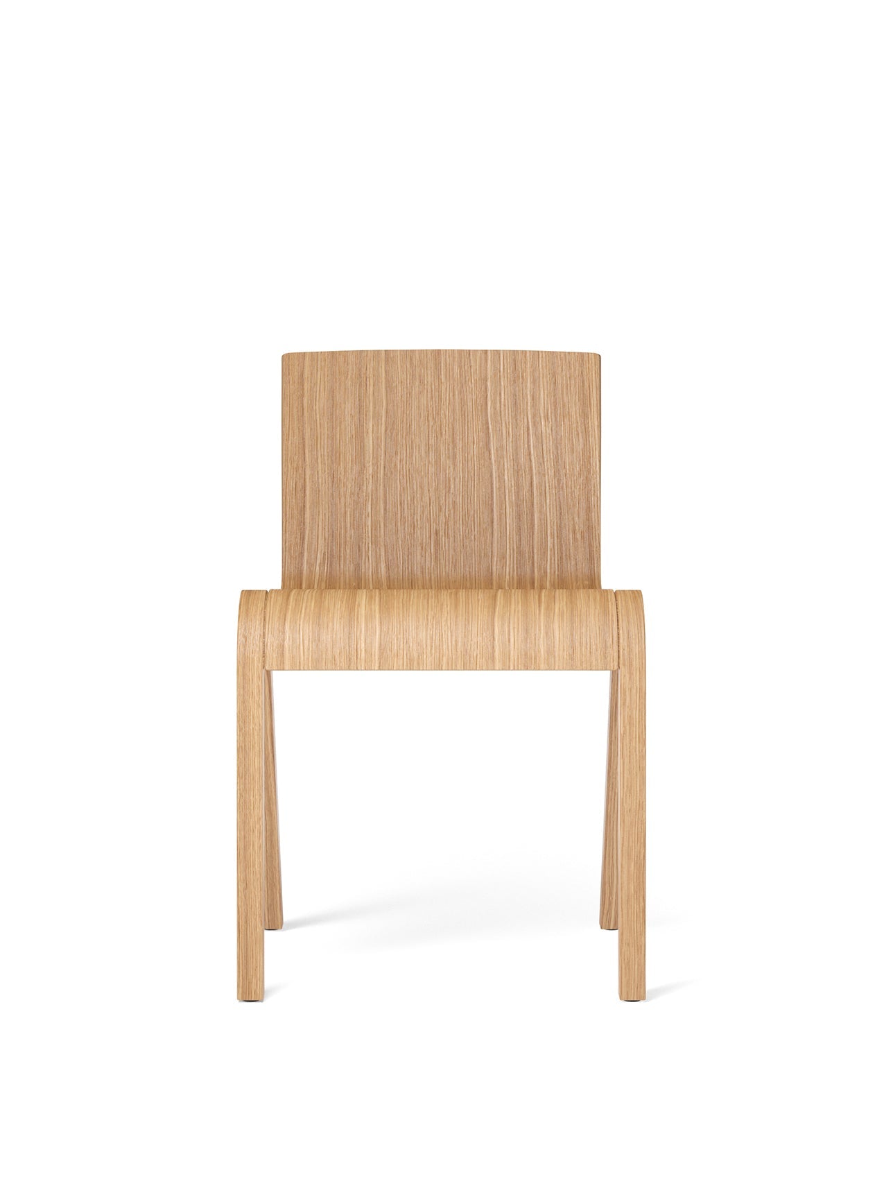 The result of a study of the possibilities of form-pressing techniques, Ready Chair, created for Audo by Matias Møllenbach and Nick Rasmussen, takes its cues from classic free-swing chair designs, its cantilevered seat and backrest appearing as if suspended on air. Available in FSC™-certified oak veneer, it comes with a natural or red stained oak finish and with the option of an upholstered seat and back. Perfectly sized for use as a dining chair, its stackable design and row-connecting feature make it equally suited to a multitude of other uses.