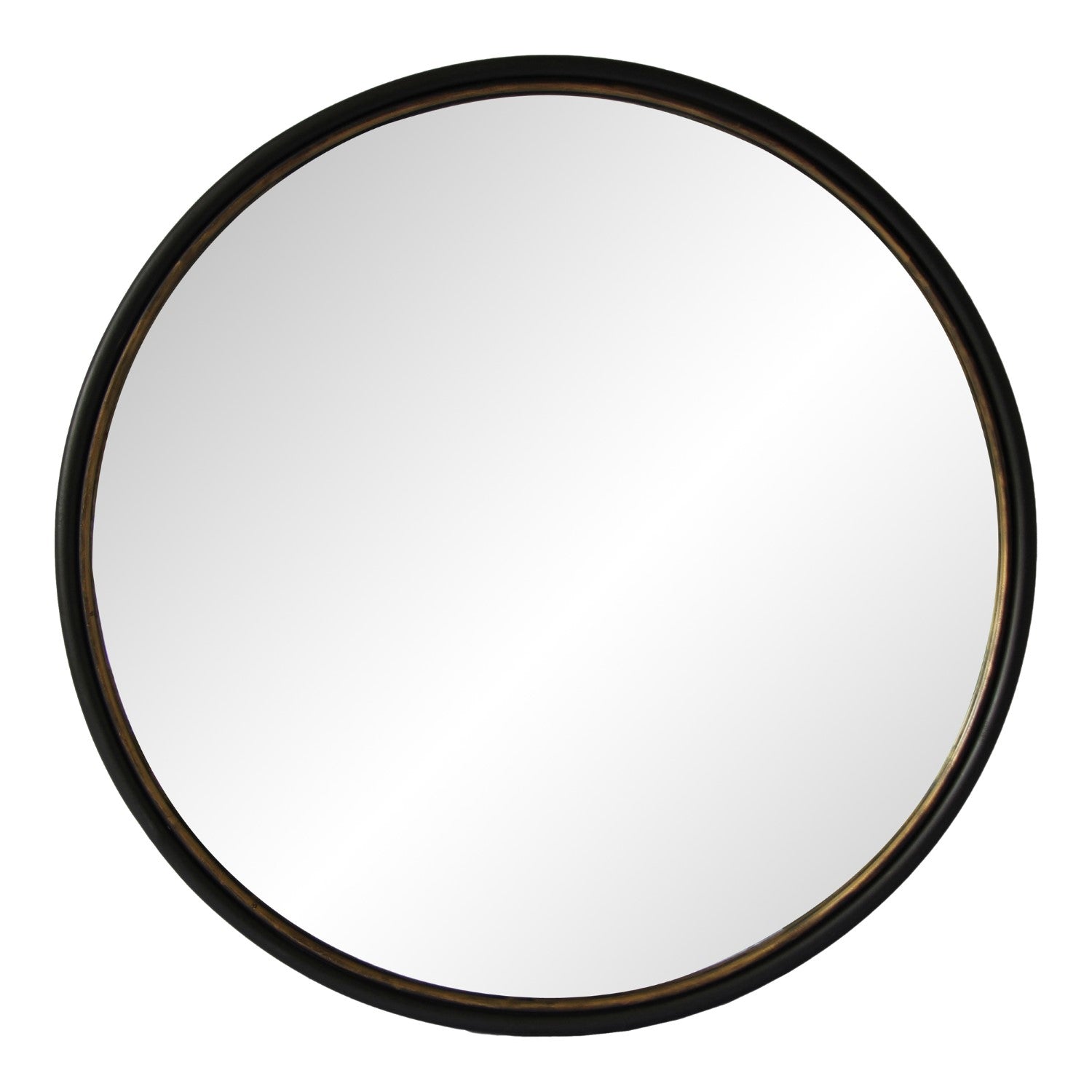 Elegant in its simplicity, this round mirror features a sleek black rim. Rustic, industrial design for your living area.