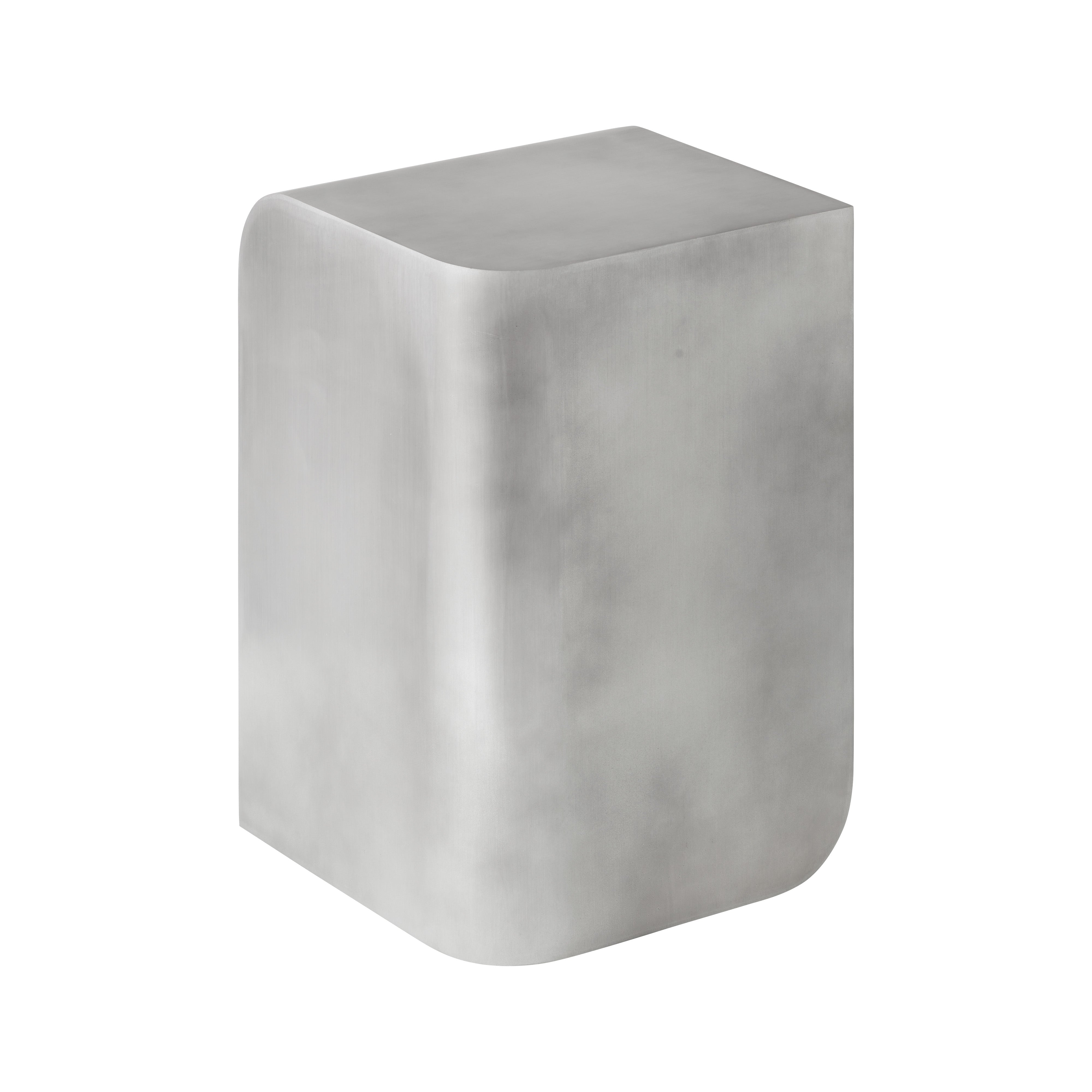 The Volume Side Table introduces a fresh approach to contemporary furniture that stands out in any setting. Crafted from aluminium, it boasts a sleek and modern appearance with curved lines offsetting straight lines to create a balanced look. The polishing process on the metal enhances its visual appeal, giving the table a unique sheen that adds character. The lacquer-protected surface ensures low maintenance, making it easy to clean and maintain the side table's sleek appearance with minimal effort whether used indoors or outdoors.