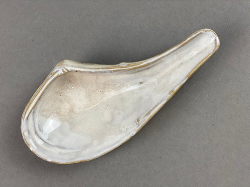 White glaze inside and greenish brown glaze on the outside. Handmade stoneware.